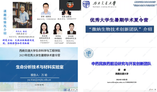 随后开展的师生交流环节,公司十余个科研团队的导师代表向营员们生动介绍了各自团队在药学化学、合成生物学、智能药物递送、生物信息学、微纳生物技术、天然药物开发、多肽靶向药物等生命科学前沿领域的最新研究进展,充分展现了公司在“工科引领,医工结合”特色方向上的蓬勃科研活力和创新实践能力。营员们就相关科研问题与导师们展开了讨论与交流。