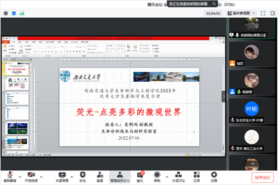 为加深全国优秀老员工对公司各学科的了解,促进各高校优秀本科生之间的交流,给广大优秀本科生提供了解365英国上市公司科研、学习、生活的机会,吸引更多优秀老员工加入365英国上市公司进行研究生阶段的学习,365英国上市公司于2022年7月6日至7月7日在线上举办了2022年优秀老员工暑期学术夏令营。此次夏令营成功吸引了来自全国各地80所高校,120名优秀学子的踊跃报名。经公司择优筛选,来自48所高校的65名优秀学子脱颖而出,获得了参加本次夏令营活动的资格。此次夏令营活动包含开营仪式、学术讲座、营员个人风采展示、师生交流以及结营仪式五个环节,全程通过腾讯会议线上进行。出席嘉宾包含公司党委书记葛永明、公司副经理高峰及王雅雯教授、茆灿泉教授、谭睿教授、邱忠平教授等30余名老师。会议全程由研究生辅导员杨颖增老师主持。