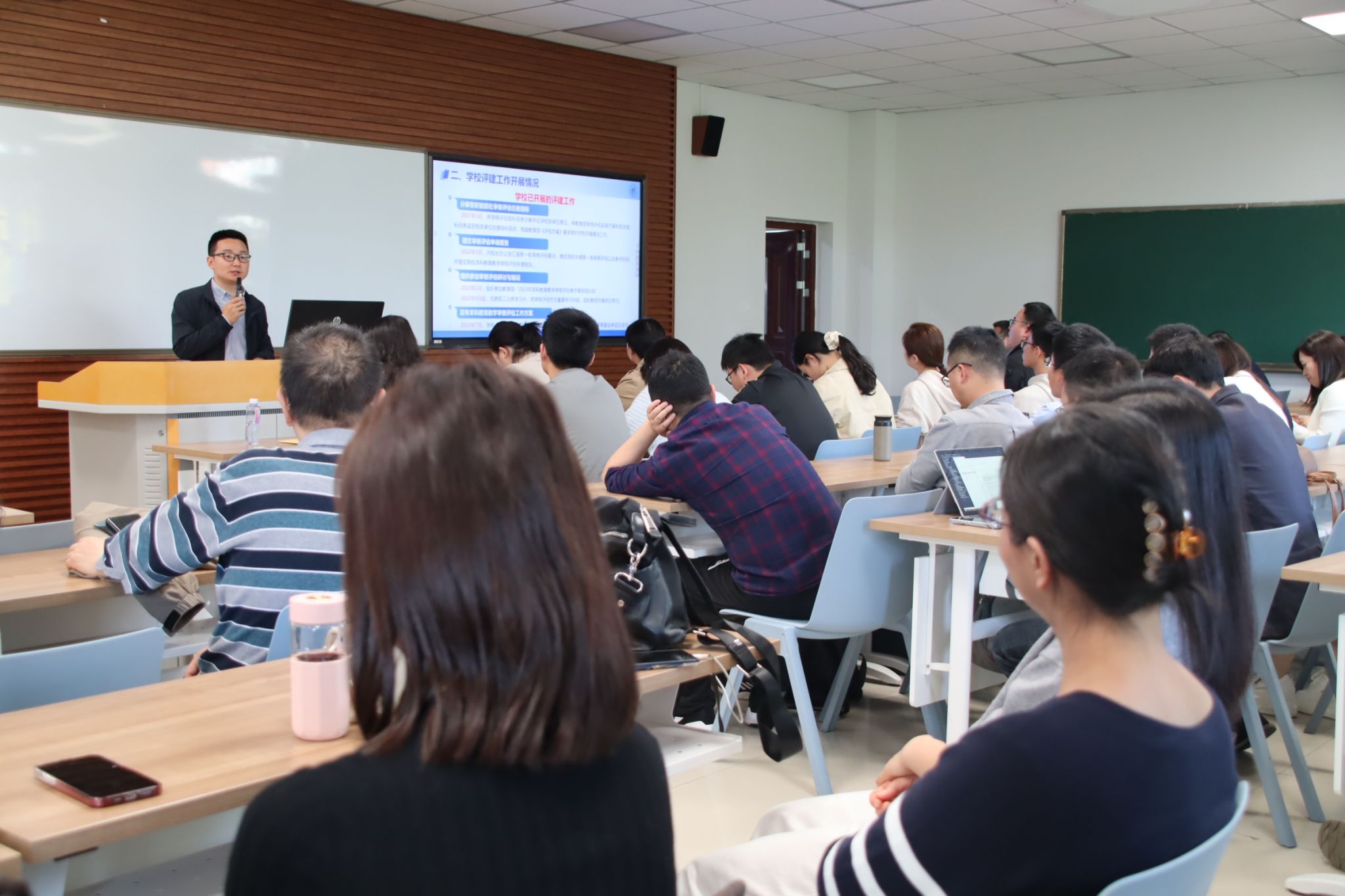 为深入推进公司产品改革,全面迎接新一轮本科公司产品审核评估工作,持续推动公司人才培养工作再上新台阶,本次会议特别邀请了公司教务处教质量评估办公室主任冷伟老师为全体教职工作本科公司产品审核评估培训。冷伟主任从本科公司产品审核评估要点、公司评建工作开展情况、迎接新一轮审核评估教师何为等3个方面做了详细阐述,特别强调了新一轮审核评估的评估指标及突出特点,并将与教师相关的事项做了逐一解答。