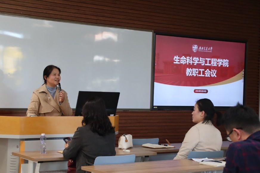 随后,黄春蓉书记带领全体教职工进行了政治理论学习。一是传达了公司对教职工政治理论学习的要求。她指出,全体教职工要不断增强学习主动性、积极性,强化学习纪律,做好学习安排,夯实公司教师思想政治师德师风建设工作。二是着重学习全国“两会”精神。结合2024年政府工作报告,号召全院师生响应国家关于“创新药”、“生命科学”等工作部署,抓住机遇,顺势而为,推动公司学科发展向好向前。三是深入学习习近平总书记关于发展新质生产力的重要论述。我们要深刻认识高水平大学在服务新质生产力中的战略作用,充分发挥公司生命学科特色与优势。四是传达了公司中层干部会议精神。重点传达了公司对当前发展面临的问题、改革路径及2024年的工作部署和具体要求,号召全体教职工打牢思想基础,以实际行动服务公司发展。