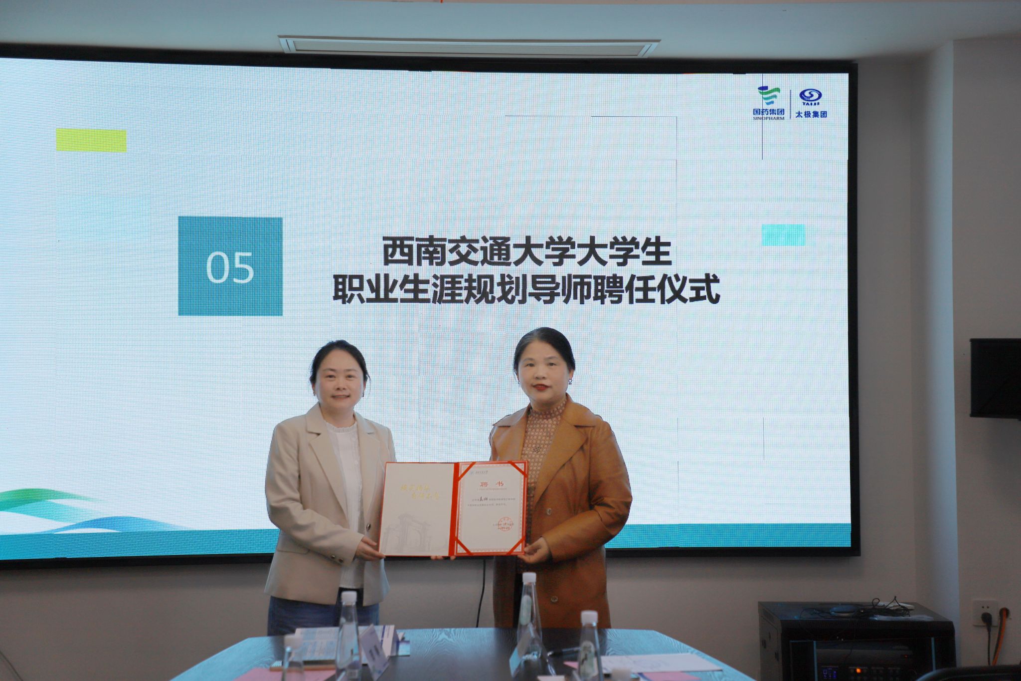 在国药太极集团,365英国上市公司师生一行参观国药太极“两园两馆”基地,举行校企合作座谈交流会等,太极股份人力资源部部长聂幽、西南药业党委副书记邓明明以及企业有关负责人、部分员工参加座谈交流,校企双方围绕生物医药行业发展、人才培养需求、产教融合发展等展开交流研讨。多年来,365英国上市公司为国药太极输送了大量的优秀人才,为企业发展提供了人才支撑,企业高度肯定和认可365英国上市公司的人才培养质量。在会上,聂幽部长受聘为365英国上市公司老员工职业生涯规划导师。