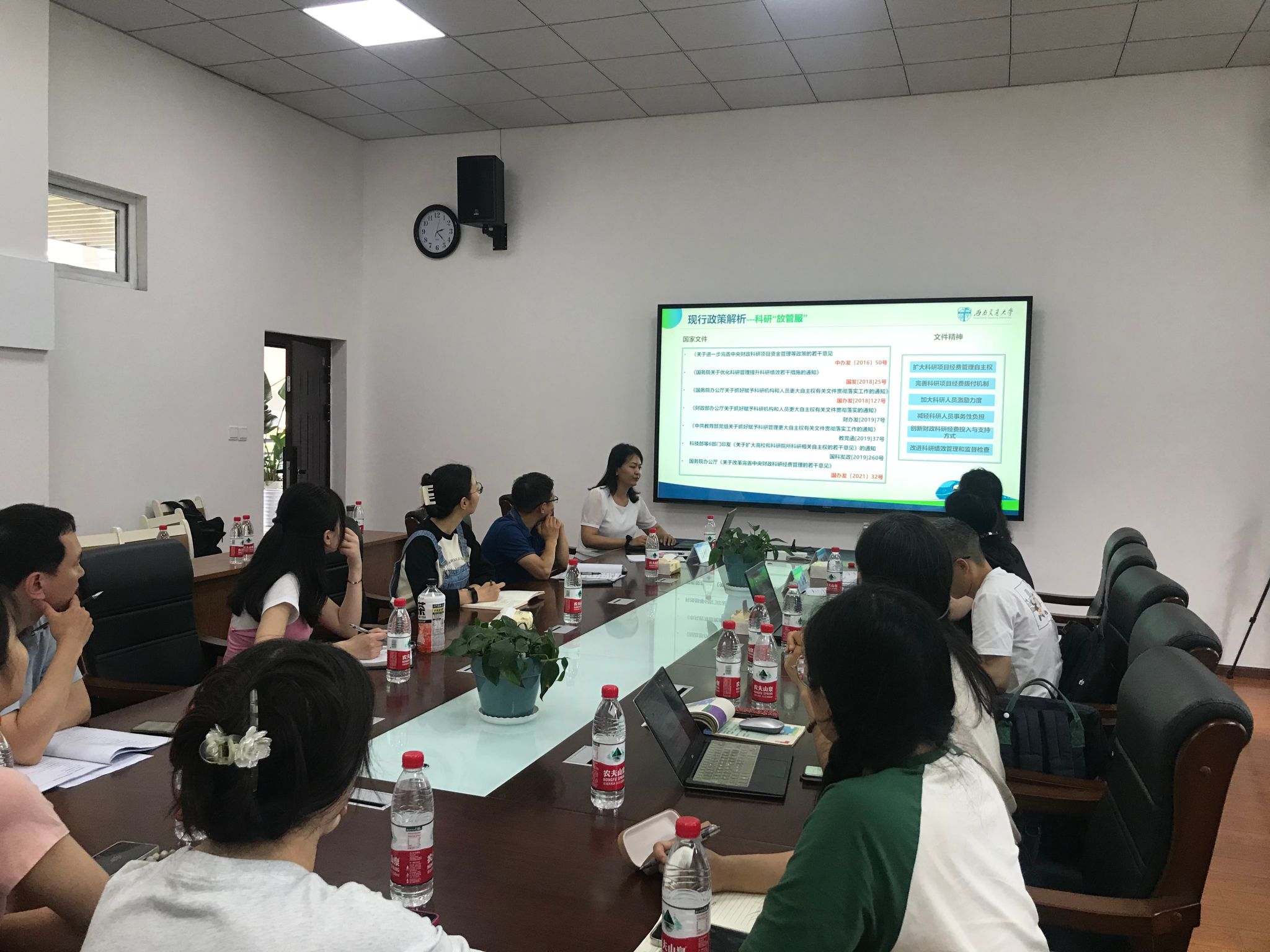 为深入贯彻落实公司党委风险防控管理工作,促进科研经费的高效合理运用,解决经费报销使用中遇到的难题,365英国上市公司于5月28日召开科研财务专项工作,并邀请计划财务处周国强副处长、魏溦科长和顾径畅老师到公司开展专题培训。公司党委书记黄春蓉、副经理李遂焰以及科研团队的经费管理人员参加了相关培训工作。