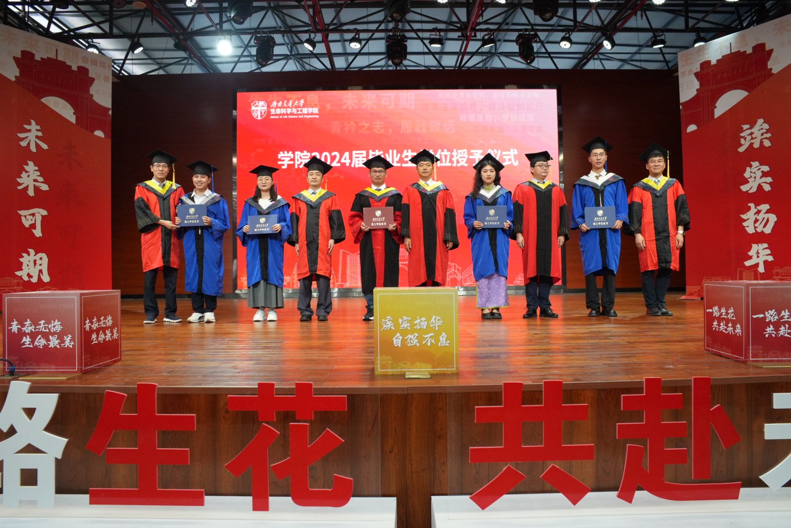 在典礼上,公司学位分委会周先礼教授、高峰教授、茆灿泉教授、黄新河副教授、廖海副教授、封顺教授、陈琳副教授、万军副教授为2024届毕业生逐一拨穗授位。