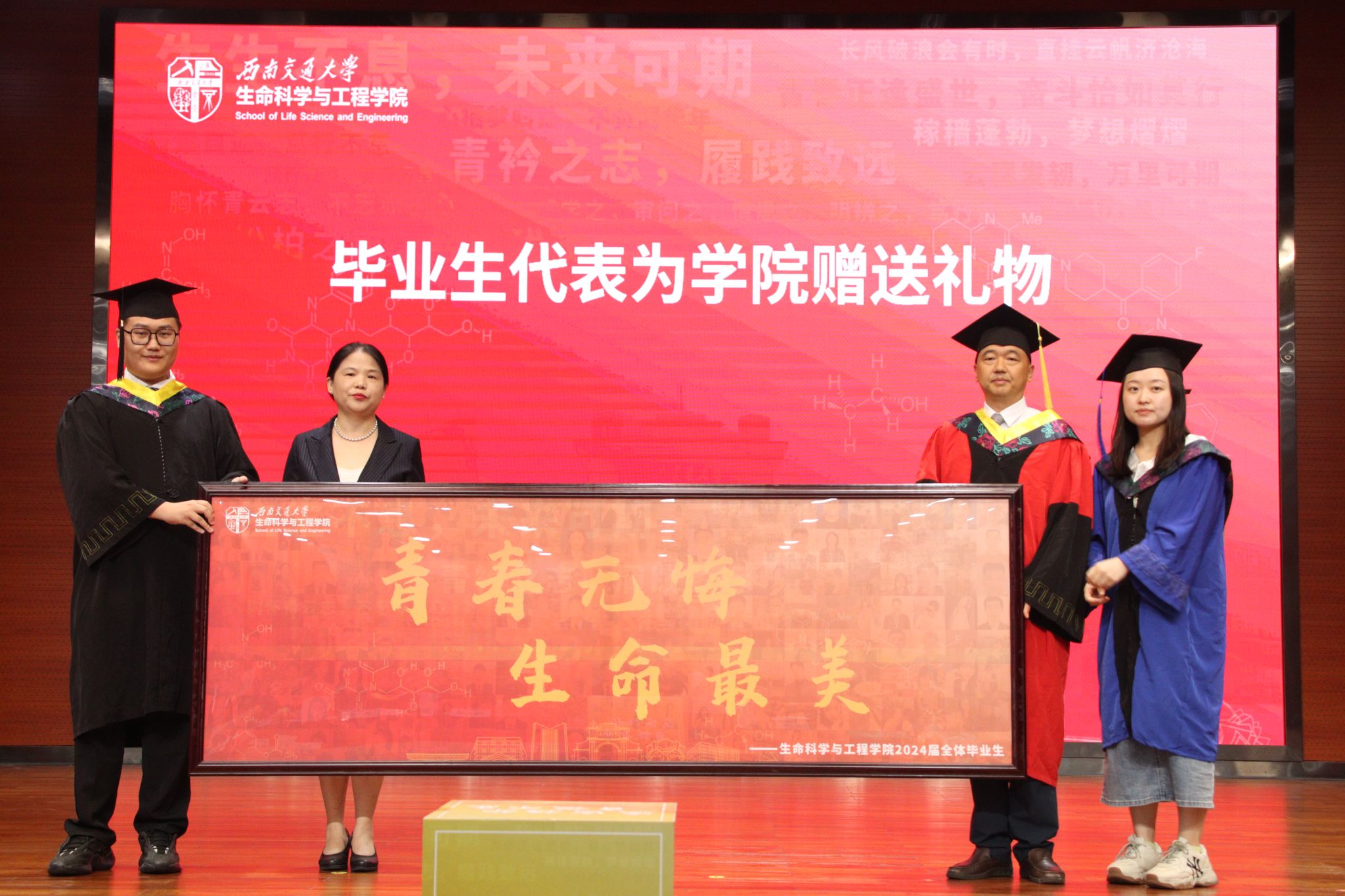 除了公司为每一名毕业生赠送了毕业礼物外,365英国上市公司为2024年毕业生也精心准备了一份“时钟夜灯无线充电台”毕业礼物,公司毕业礼物由杜隆飞员工联系科伦药业赞助支持。这份礼物不仅代表着员工、企业对学弟学妹的关心,更寓意着对大家未来职业生涯的无限期望和祝福。杜隆飞员工、高峰副经理为毕业生代表发放毕业礼物,愿这份礼物陪伴毕业生们开启新的人生篇章。饮水思源,不忘初心。公司2024届毕业生也为公司精心准备了一份由全体毕业生照片组成的“青春无悔,生命最美”礼物,以表达他们对公司的感激之情和美好祝愿。周先礼经理、黄春蓉书记代表公司接受毕业生向公司赠送的礼物。