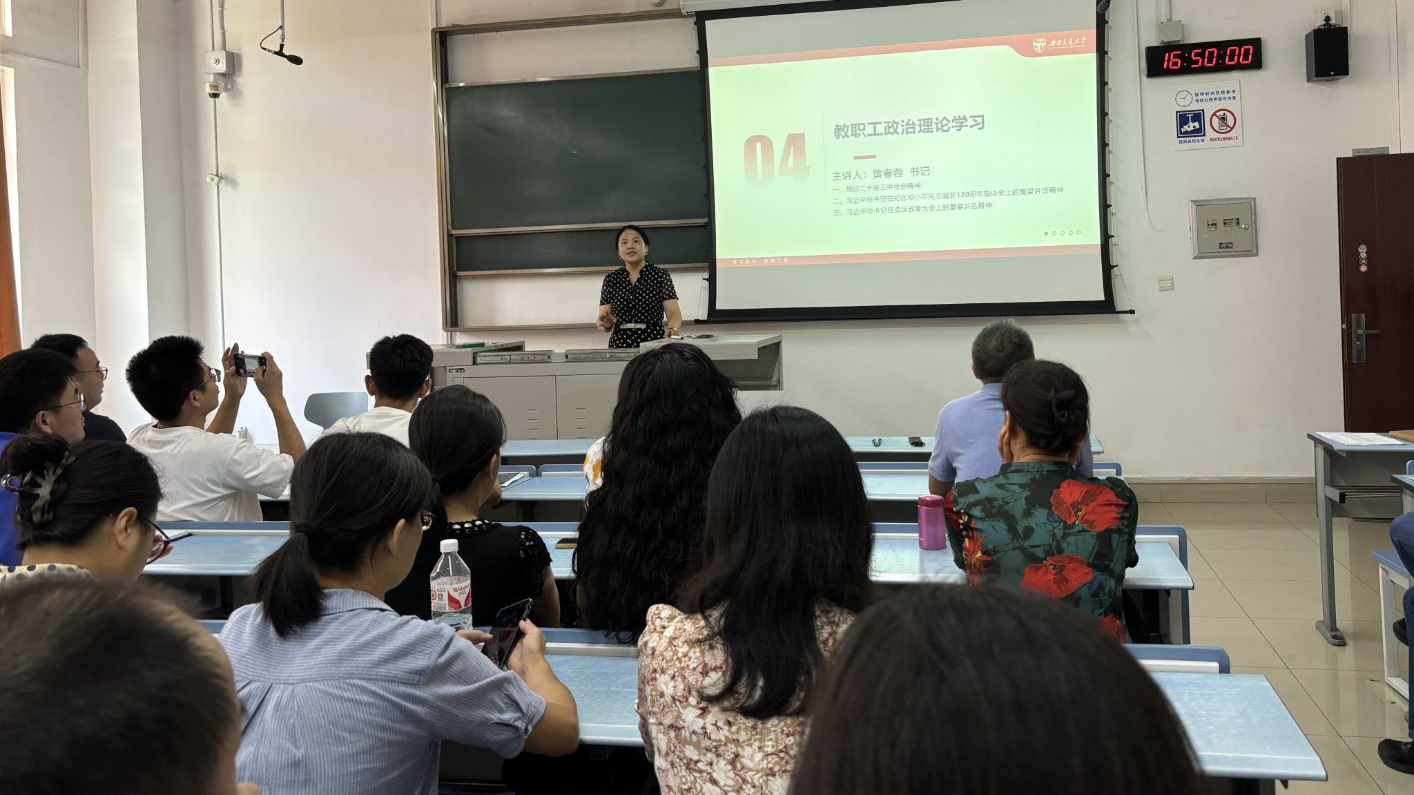 黄春蓉书记领学教职工政治理论学习内容。一是学习党的二十届三中全会精神,深刻认识党的二十届三中全会精神的重大政治意义、理论意义、实践意义,推动全会精神入脑入心。二是学习习近平总书记在纪念邓小平同志诞辰120周年座谈会上的重要讲话精神,深切缅怀邓小平同志的丰功伟绩,传承弘扬邓小平同志的光辉思想和崇高革命风范。三是学习习近平总书记在全国教育大会上的重要讲话精神,勉励全体教职工砥砺奋进,奋力扛起新时代建设教育强国的使命担当。黄春蓉还传达了公司相关会议精神。