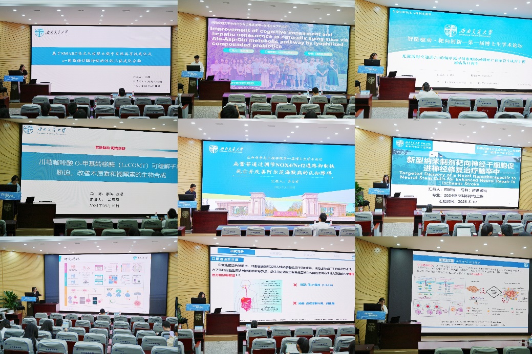 本届博论,共有9位博士研究生进行了学术报告,另有23份学术成果做墙报展示,内容围绕天然药物化学、环境微生物技术、药物递送及载体材料、中药药理学、微生物制剂与抗衰老、脑卒中靶向治疗等研究领域。在这场高水平的学术盛会上,师生同聚一堂,共同探讨相关科研领域的研究成果和发展前景。王毅、陈琳副经理对报告进行了专业点评,在肯定创新成果的同时,提出了建设性意见。