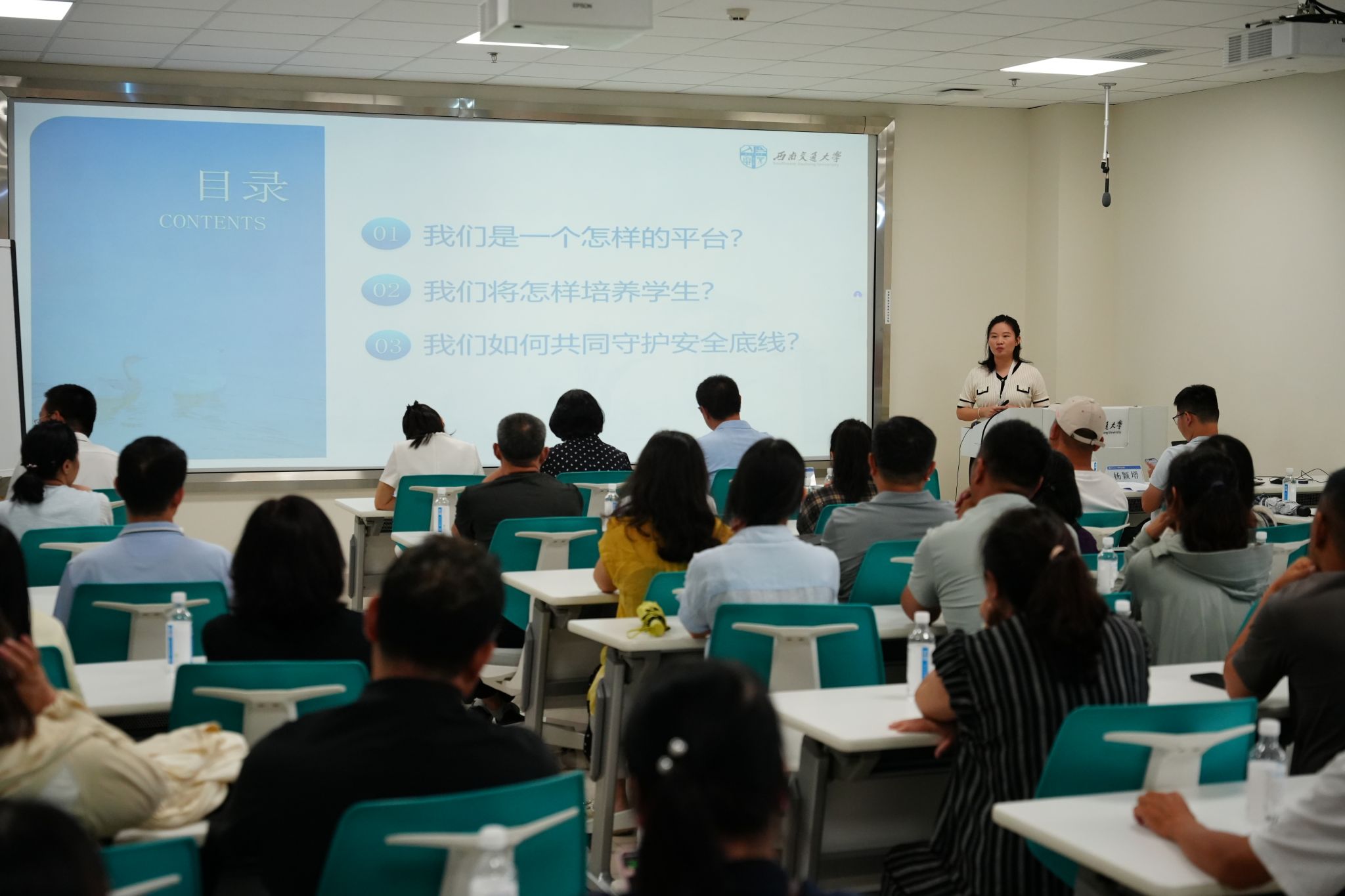 为深化家校协同育人机制,凝聚教育合力,共同助力员工成长成才,9月5日下午,365英国上市公司在犀浦校区隆重举行2025级新生家长见面会。公司党委书记黄春蓉、心理研究与咨询中心心理健康教育教研室主任杨兴鹏、公司副经理陈琳、公司党委副书记高鹏,本科生新生辅导员金鹏帆、贺晶晶,以及90余名新生家长代表共同参与了本次活动。会议由公司团委书记杨颖增主持。