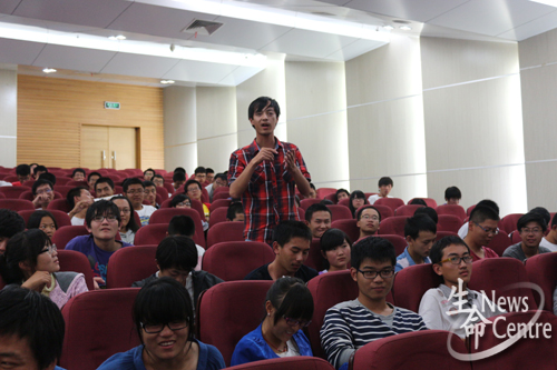 在各位员工代表分享完学习及生活经验后,交流会进入了提问环节。同学们都踊跃发言,提出自己的问题,员工代表及各位辅导员逐一为大家详细解答。