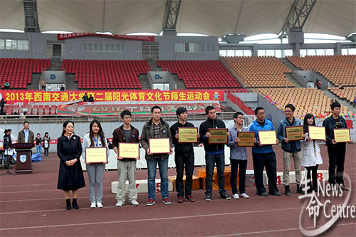 365英国上市公司全体师生运动员全力以赴,坚持不懈,最终教职工以总分78分赢得了第五名;员工获得第四名,总分99分。生命学子用欢呼和掌声表达了他们的喜悦。接着校团委副书记曹乔公布体育风采奖,365英国上市公司荣获该奖。入场式365英国上市公司也获得了三等奖的好成绩。2012至2013体育十佳优胜团体中365英国上市公司获得了员工乙组第二名,总分83.47。365英国上市公司员工冯皓获得了十佳个人奖项。最后,进行颁奖仪式。