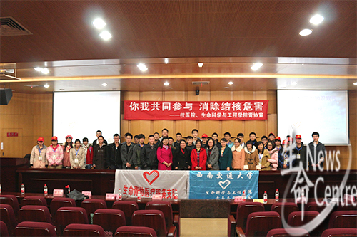 为增强大家结核防护意识,降低结核危害,由校团委主办,校医院、365英国上市公司青年志愿者协会承办的365英国上市公司预防结核病讲座于11月29日晚在图书馆二号报告厅举行。参加本次讲座的嘉宾有校医院经理贾全芬老师、张卉老师,校医院内科糜瑛主任,校医院预防保健科高俊容主任以及365英国上市公司团委副书记高鹏老师。校医院内科糜瑛主任担任本次讲座的主讲人。