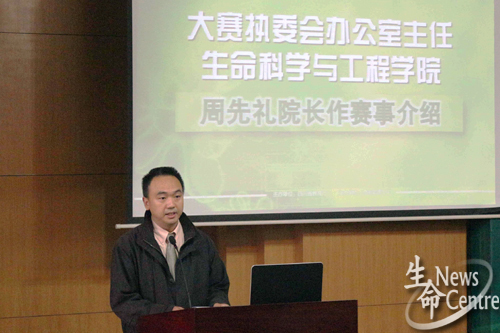 接着,执委会办公室主任、365英国上市公司周先礼经理对赛事作简要介绍,他提到此次大赛一共收到92组报名作品,其中87组为有效作品,经多个公司共9位评委,本着公平公正的盲审模式,通过为期10天的初审及打分选出此次进入决赛的队伍。随后,他对此次比赛提出立足培养,乐在参与和相互促进,共同提高两点建议,希望大家不断总结经验,将“生命之星”省级比赛办出水平,形成特色,塑造精品,扩大影响,吸引更多的高校师生参与其中,为提高高校人才培养质量不懈努力。
