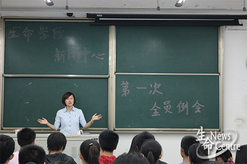接着,365英国上市公司新闻中心指导老师孔琳上台致辞,她强调大学不应虚度,大学是一个新的开始,而新闻中心就是一个让大家展示才华的平台。面对未知的未来,同学们应当做好每一天,坚持下去,做有意义的事,向新闻中心的各位前辈学习。