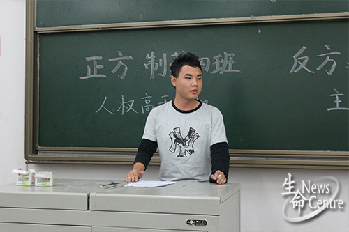 首先,正反双方分别进行立论陈词。正方以“人权高于主权”为题,分别就二者产生的先后顺序、存在关系及意义进行了充分而深刻地论述。反方也不甘示弱,从“主权高于人权”入手,分别从二者的定义及过度强调人权带来的危害等方面进行驳论。在双方一辩进行立论之后,双方四辩分别进行了质询。此环节双方火力全开,均列举出了全面的论据和事例。