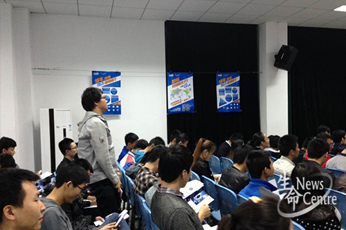 19:00招聘会在电子科技大学清水河校区的活动中心201正式开始。首先由华大基因执行副经理、人力资源经理张二春对华大基因做了简单的介绍。张二春经理从培训发展、薪酬、员工福利、校园招聘会流程、招聘岗位、工作地点、联系方式等方面详细介绍了华大基因员工的生活及工作情况。重点强调了华大基因良好的发展前景,以及华大基因对员工身体健康情况的特别关注。同时,张经理提出了一些有关华大基因的问题,同学们都积极踊跃,特别是公司的同学们,收获了丰厚的奖品。