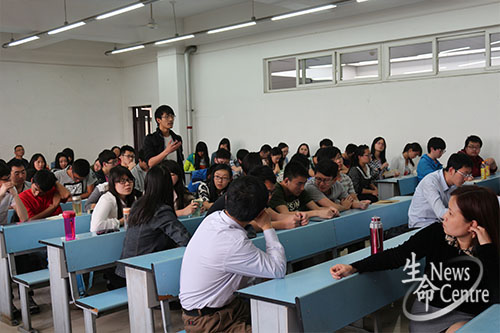 大会第一阶段,由各位老师向同学们介绍制药工程专业不同方向的学习内容并解析其就业形势。首先上台的是马超英老师,他从制药工程专业化学、生物、中药三个方向的专业特色、主干学科、专业核心,就业方向以及医药人才市场的需求量等方面进行了讲解,重点分析了中药制药方向的发展前景和就业情况,鼓励同学们相信自己的专业并热爱它。