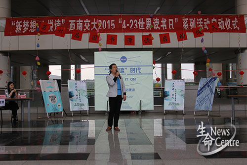 主持人致开场白后,由图书馆副馆长熊少波致辞。她首先为本次图书漂流活动顺利举办表示祝贺,同时感谢到场嘉宾以及参与组织活动的全体同学。熊少波馆长说道,书是人类智慧的结晶,读书使人受益,博古通今,而图书漂流正顺应国家倡导“全民阅读”的精神,是一项十分有意义的活动。本届活动相比往届,规格更高,受众更大。最后,她祝愿同学们能够通过本次活动接受更好更多的精神食粮,将阅读的习惯保持下去,并获益终身。