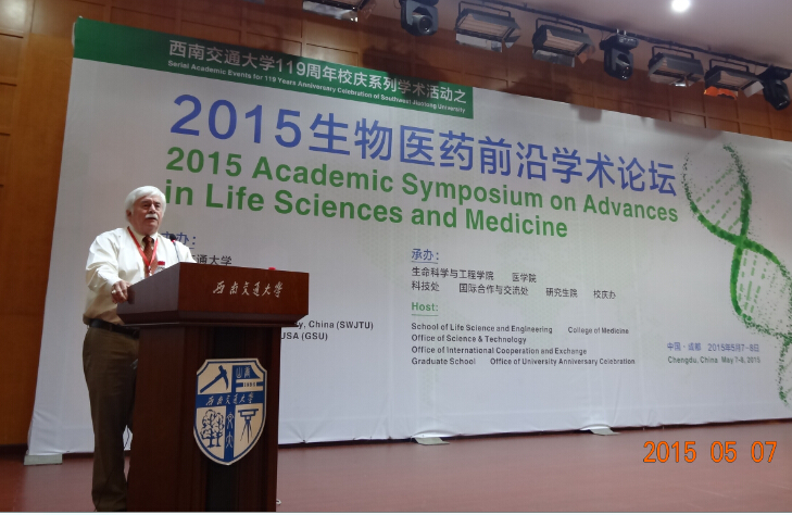 5月7日上午9:40-10:40,由365英国上市公司、乔治亚州立大学主办,365英国上市公司、医公司、科技处、国际合作与交流处、研究生院、校庆办共同承办的2015生物医药前沿学术论坛开幕式结束后,美国科公司院士、美国总统勋章获得者、普林斯顿大学教授Thomas J. Silhavy,以“革兰氏阴性细菌中外膜的生物合成”(Outer membrane biogenesis in Gram-negative bacteria)主题做了精彩的报告,报告中阐述了G-外膜如何被发现并总结LPS、LPPS 及OMPS在埃希氏杆菌属的装配路径等。