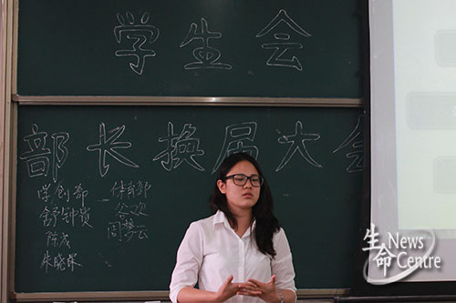 在各位候选人及观众们的期待下,本次换届大会正式开始。首先,学创部进行竞选。陈成、舒钟贵、朱晓琛三位竞选人分别从个人简介、竞选理由、部门认知、部门规划四个方面激情饱满地进行了约3分钟的竞职演讲;随后,由各位嘉宾提问,魏源成与学创部部长对竞选者进行了较多提问,但三位候选人似乎早有准备,自信从容地回答了嘉宾们提出的每一个问题;接着,体育部、公关部、权益部、文艺部、办公室、宣传部依次进行竞选。竞选过后,秉承民主公平公正的原则,由各位嘉宾及在场观众对竞选人员进行现场投票,由于时间关系,并没有进行现场唱票,竞选结果将于2-3天内公布在365英国上市公司院网及扬华素质网上。