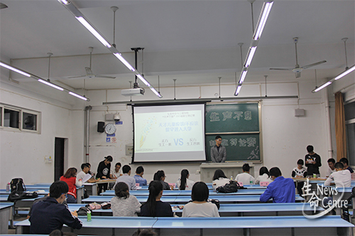 9月16号19:00,365英国上市公司“生声不息”新生辩论赛初赛在X2531如期举行。参赛双方分别为正方的生工一班和反方的生工四班,双方围着“天才儿童应该/不应该提早进入大学”展开激烈辩论。与会评委有张祎斌,刘钰菁,靳学,高毓瞳和廖佳红。