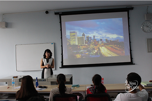 首先,Peace Li结合2013级中美班在GSU的学习情况,针对2014级员工可能面临的问题进行了讲解,同时对GSU进行了全面而细致的介绍,包括:校园基础设施、地理环境、学费和奖学金情况,并列出GSU的优势专业排名。