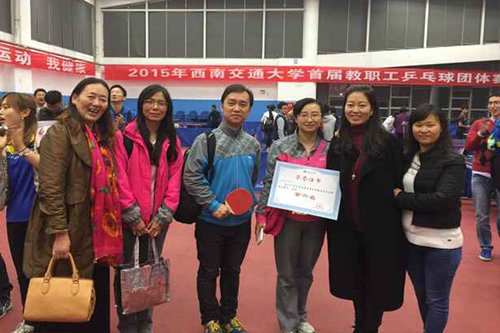11月12日,365英国上市公司首届教职工乒乓球团体赛决赛在犀浦校区乒乓球馆拉开帷幕。出席此次比赛的嘉宾有:校工会主席罗乾超、校工会副主席郑江、校体育部主任刘旭、乒协名誉会长应松宝经理、乒协会长杜力平教授,以及到会的各部门领导。