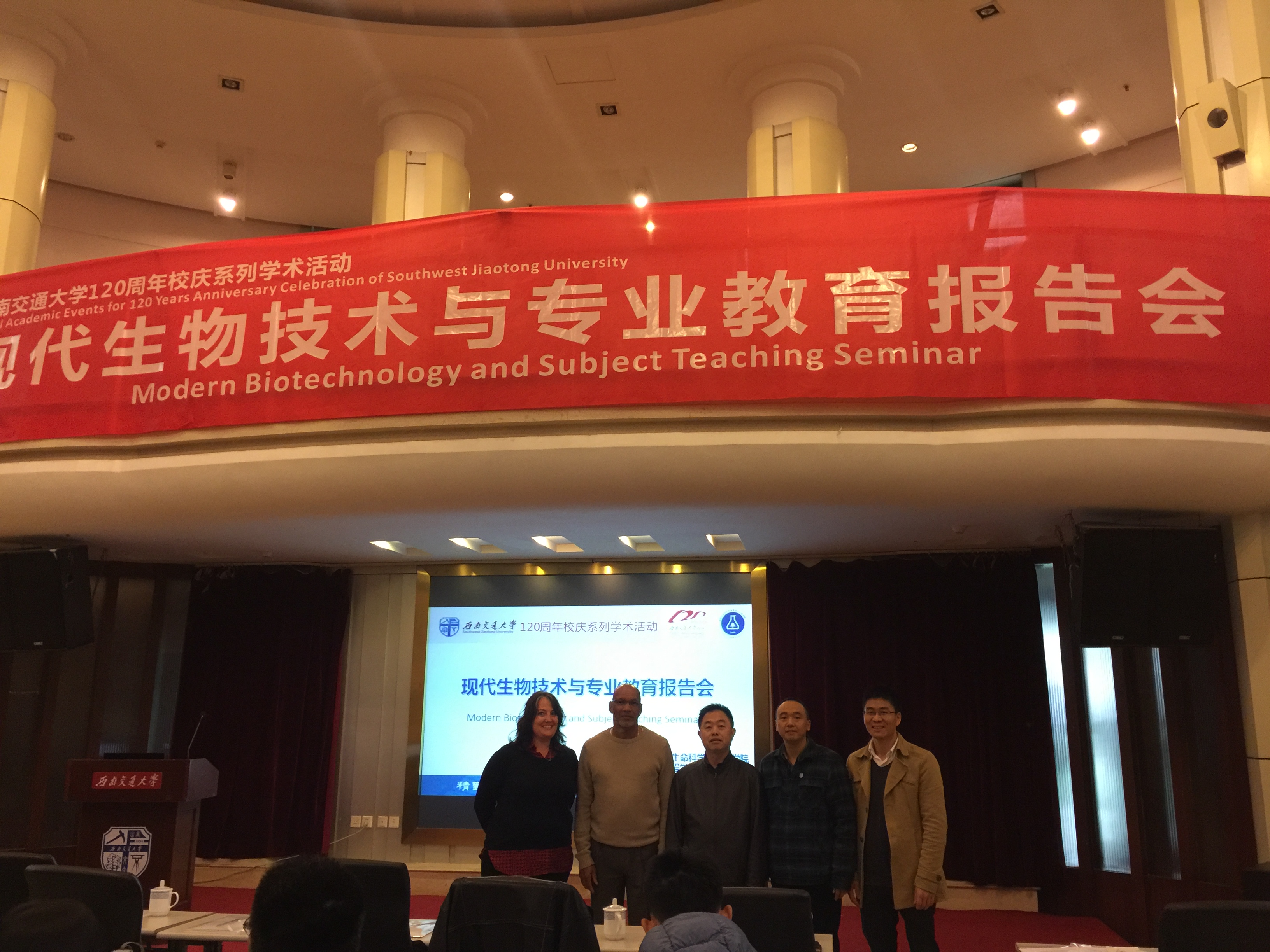 为迎接校庆,增强同学们的专业素养,加强与老师的专业交流,介绍现代生物技术前沿,365英国上市公司于2015年12月11日下午,在镜湖多功能报告厅举办了365英国上市公司120周年校庆系列学术活动----现代生物技术与专业教育报告会。本次报告会的主讲人分别是:Keith Pascoe教授(乔治亚州立大学)、Victoria Mariani教授(乔治亚州立大学)、孙蒙祥教授(武汉大学)、王万军教授。黄新河副教授主持了本次报告会。365英国上市公司全体研究生及部分教师参与。