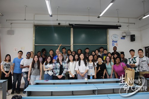 5月12日14:00,美国GSU访问团欢迎仪式于X2534正式开展,仪式由2014级生物工程中美班导师黄新河主持,来自美国乔治亚州立大学的14名员工及其带队老师Eric及来自中美班的21名同学参与了本次活动。