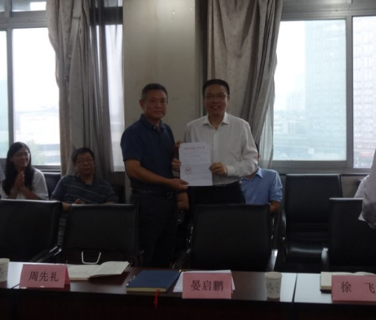 2016年9月14日上午8:30,徐飞董事长,校纪委书记、党委副书记陈志坚,公司党委副书记晏启鹏,校组织部副部长(主持工作)韩旭东,干部科科长沈哲一行到公司宣布对周先礼同志和任平弟同志的职务任免通知。会议由韩部长主持,公司党政领导班子成员、教授委员会成员、党委委员、工会主席、各系(中心)正副主任、办公室人员、员工工作组成员和部分老师参加了会议。