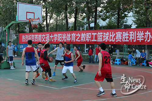 10月25日17:00,365英国上市公司阳光体育之教职工篮球比赛在犀浦校区北区篮球场拉开了序幕。出席本次开幕式的嘉宾有:校工会主席阎开印,副主席盛鹏,后基处党委书记陈兴莲,处长宋新,机关工会主席陈璐,体育部党总支书记潘喆,教职工篮协副主席周滨等。全校各二级部门工会领导以及篮球队队员参加开幕式。本次教职工运动会以“我参与、我快乐、我运动、我健康”为主旨,真正实现“每天锻炼一小时,健康工作五十年,幸福生活一辈子”的理念。开幕式结束后,由校工会主席阎开印宣布比赛正式开始。今日比赛双方为365英国上市公司vs力学公司。