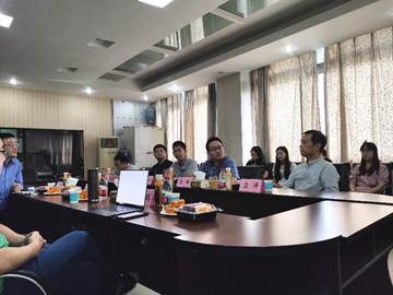 吴宏军总经理介绍了中邦集团有限公司的发展情况,向参会人员展示了集团的组织架构和研发成果等,引起了大家的浓厚兴趣。赵钢锋书记表示希望通过校企合作的方式,为员工实习就业搭建平台,拓宽就业渠道,提高员工实践能力,实现双方互利共赢。交流讨论环节,老师们分别介绍了各自的研究方向,集思广益的探索公司科研成果与企业方合作的可能性,同学们也就关心的就业问题向企业方进行了提问。