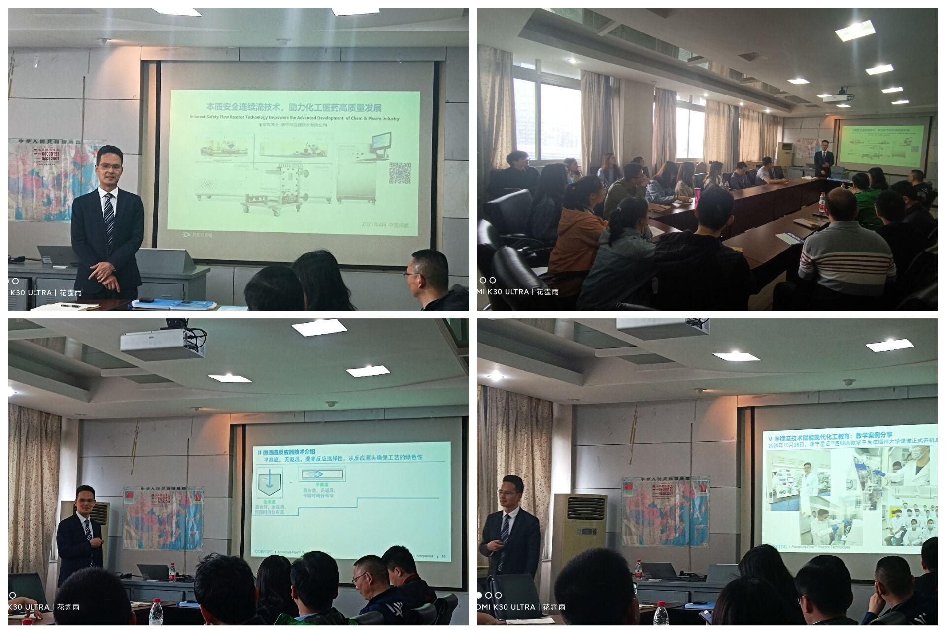 本次报告会,伍辛军博士给大家分享了微通道连续流反应器技术的特点及其在研发、工业化生产和现代化工人才培养中的应用,让老师和员工们全面了解这一创新技术,更好地服务化工行业。同时,他对师生们提出的疑问和即将毕业的同学更好从事微化工技术方向工作的问题进行了解答。