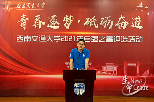 精彩的答辩过后,由党委员工工作部李毅副部长讲话,对16位候选人所传递出的自强精神进行了赞扬,认为无论结果如何,展示者都是胜利者,展示的过程比结果更重要,同时他也希望同学们要正确对待生活中的起起伏伏,勇于面对挫折,在自立自强、收获帮助后懂得感恩、服务社会。
