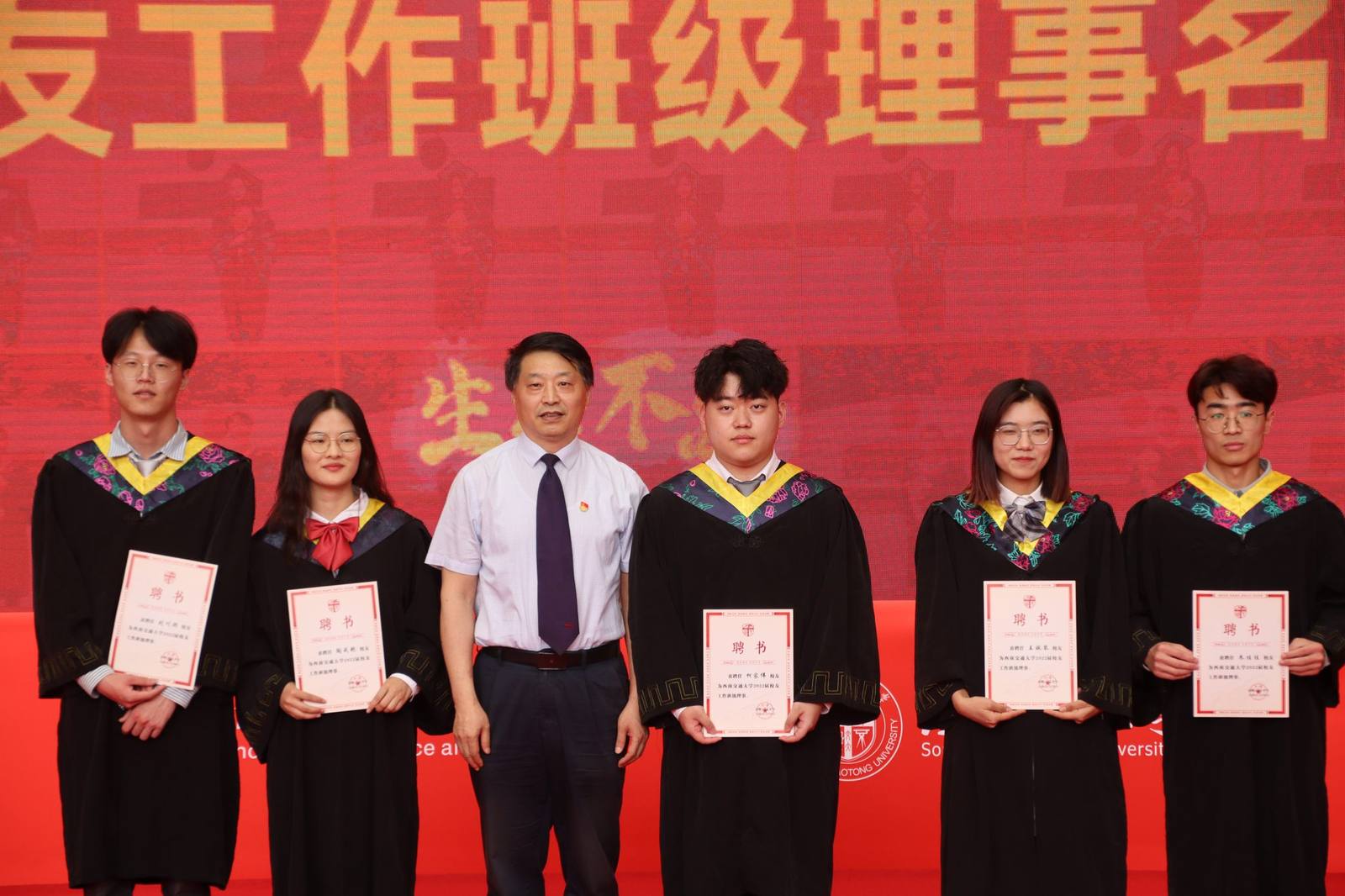 葛永明宣读2022届员工工作班级理事名单并为理事代表颁发证书。他寄语员工工作班级理事与母校母院保持联系,积极主动,发挥作用,做联结员工和母校的纽带,为公司建设和公司发展建言献策、贡献力量。