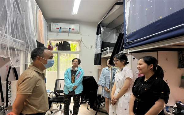 公司充分发挥“教师深入,党员冲锋”的双引领作用,关注“身”“心”健康两个层面,公司党委书记葛永明、经理周先礼带头走进员工寝室关心慰问,了解员工们的学习和生活情况,认真聆听同学们的心声,叮嘱同学们注意疫情防护,严格遵守公司各项防疫要求,同时要加强体育锻炼,希望同学们要保持良好的生活习惯,以乐观的态度和饱满的精神投入到学习中。员工工作组的辅导员老师们常态化深入员工,扎实做好疫情防控工作、暖心做好后勤服务,坚持把员工的生命安全和身心健康放在第一位。