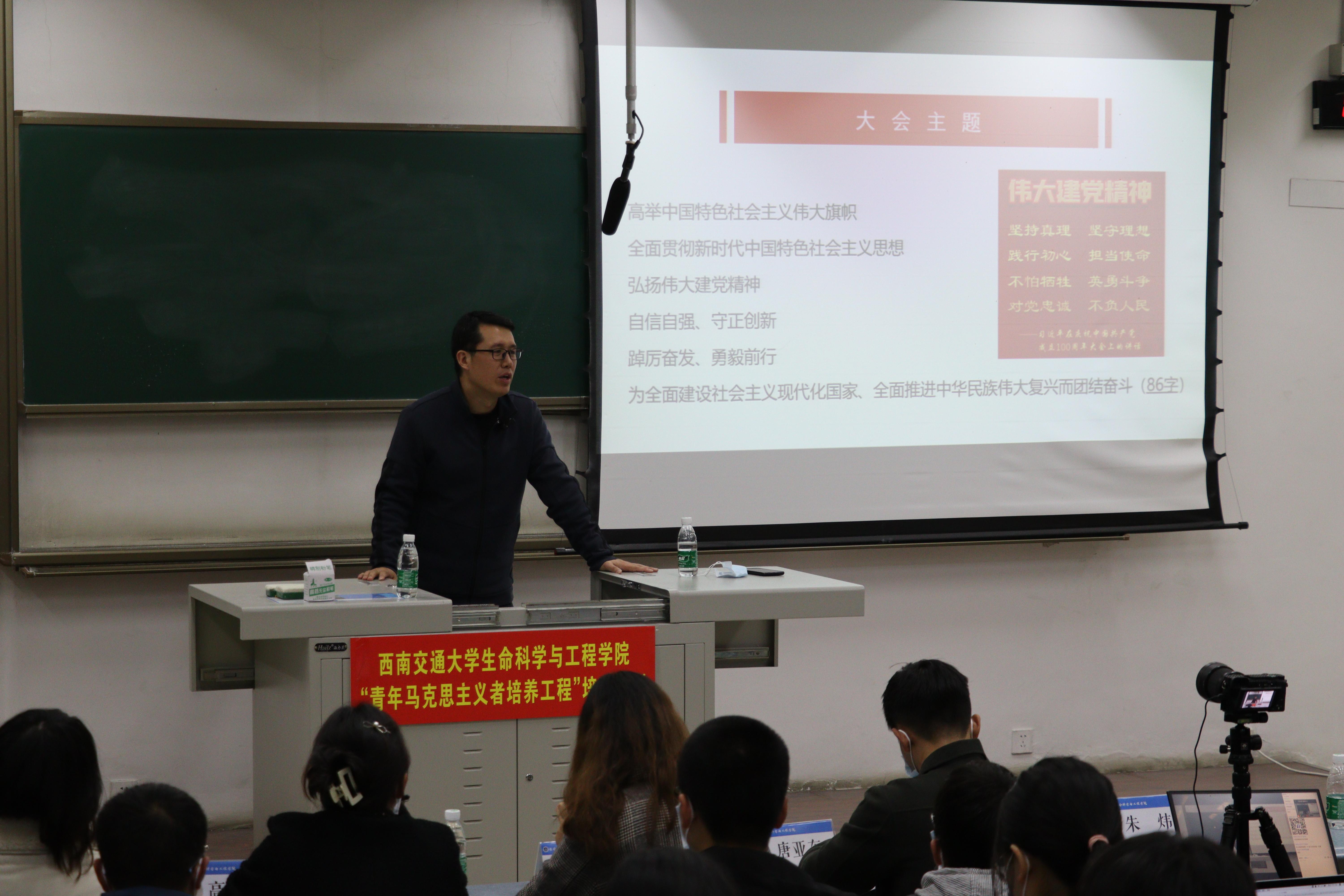 10月22日晚,生物科学与工程公司“青年马克思主义者培养工程”开班仪式在犀浦校区X1215顺利举行。参与本次开班仪式的嘉宾有马克思主义公司副教授杨伟宾、公司党委副书记朱炜、团委书记高鹏以及公司各年级辅导员,共170余名本科、硕士、博士员工骨干参加此次培训。