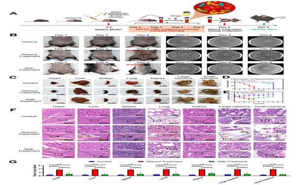 图4. TBTCP-PMB工程化噬菌体的体内抗菌。