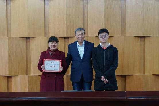 Professor Wang Yawen (left) Academician Sui Senfang (middle) Liu Wendong from the top class of 2019 (right)