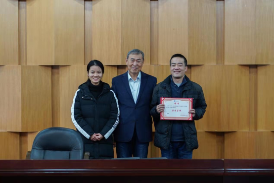 Associate Professor Liao Hai (left) Academician Sui Senfang (middle) Li Wenjie from the top class of 2019 (right)