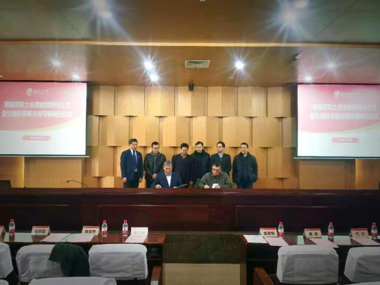First of all, under the witness of Vice President Yao Fa, team members of the School of Life Science and Engineering, and the staffsand students’ present, Li Weidong, the Dean of the School of Life Science and Engineering, signed the contract with Academician Sui Senfang on behalf of the school to reappoint the honorary professor. Professor Sui Senfang, an academician of the Chinese Academy of Sciences, was first hired as an honorary professor of our school in October 2016. During this period, Academician Sui Senfang had many academic discussions with teachers and students of the School of Life Science and Engineering and actively participated in the construction and talent training of our school's life science and engineering.
