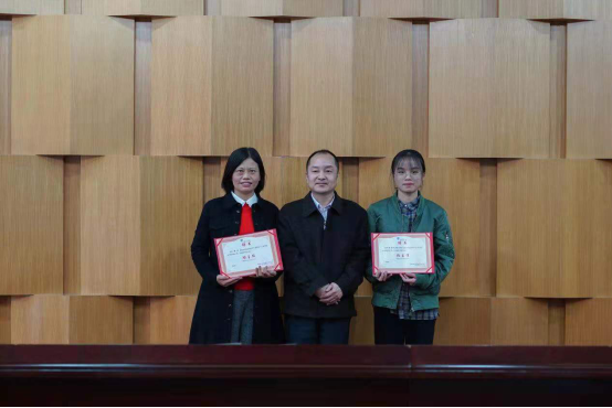 Student Xu Kaiyan from the top class of 2019 (left) Academician Sui Senfang (middle) Professor Feng Shun (right)