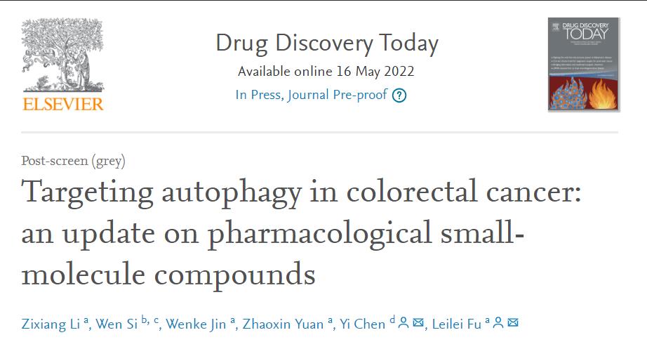 公司“小分子天然药物”团队在药学权威期刊Drug Discovery Today上发表综述