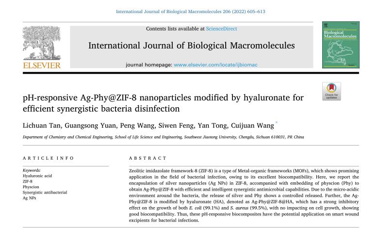 2022-05-24公司王萃娟老师课题组在TOP期刊《International Journal of Biological Macromolecules》上发表最新成果近日,西南交通老员工命科学与工程...
