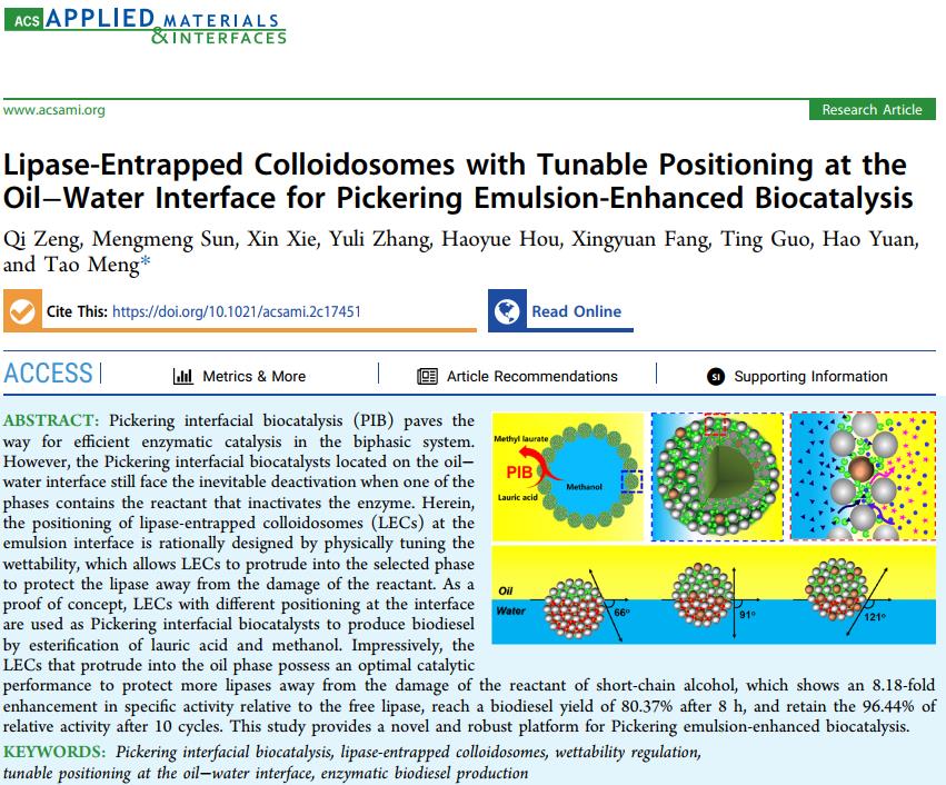 [微纳生物]Pickering乳液界面酶法催化制备生物柴油研究